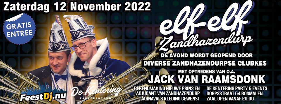 Het is de organisatie gelukt een feestelijk programma voor u samen te stellen. Na lang trainen tonen de dansmariekes u graag hun nieuwe dansen en spelen de Zandhazendurpse clubkes hun huidige repertoire. Frank Hoek en de Rosmalense Sjef van Creij betreden het podium om hun carnavalssingels van de afgelopen jaren te laten horen en uiteraard komt ook hun nieuwste carnavals hit aan bod. Ook Jack van Raamsdonk is van de partij om de stemming nog hoger op te voeren.
